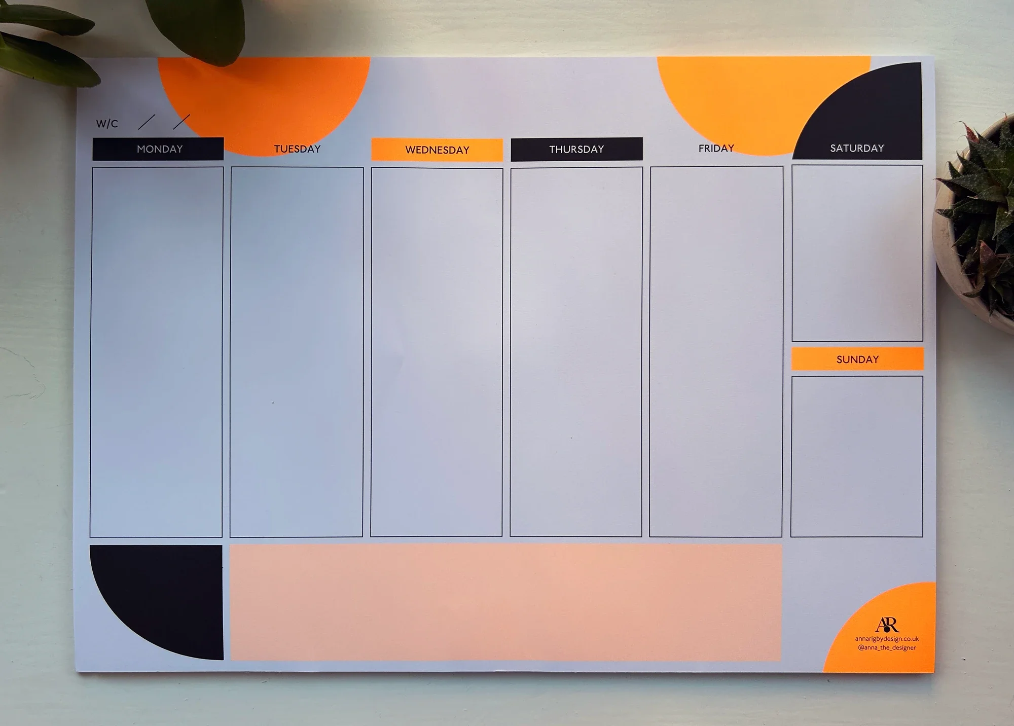 My wall planners and desk pads are large, eye catching and will hopefully bring order to your week, and help you plan your year.