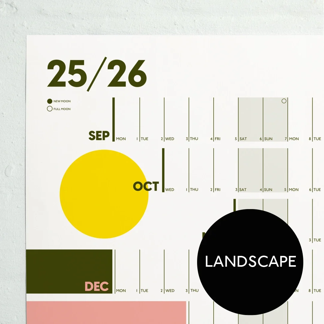 Premium printed A1 portrait wallplanner, perfect size for hanging on a door or wall.